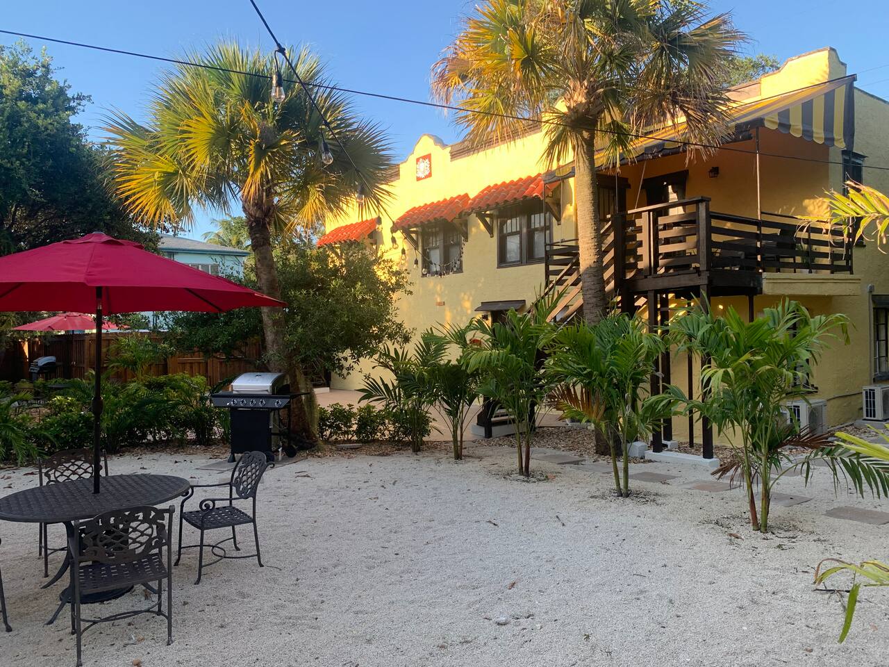 Guests have access to either gate at the front or back of the property, any of the outdoor sitting areas, hammock and grills, and laundry room.