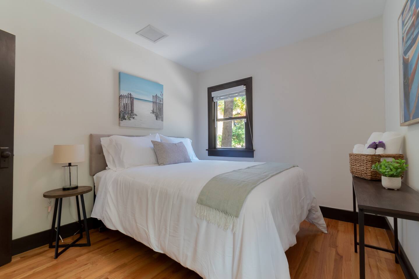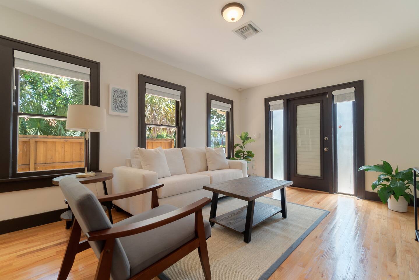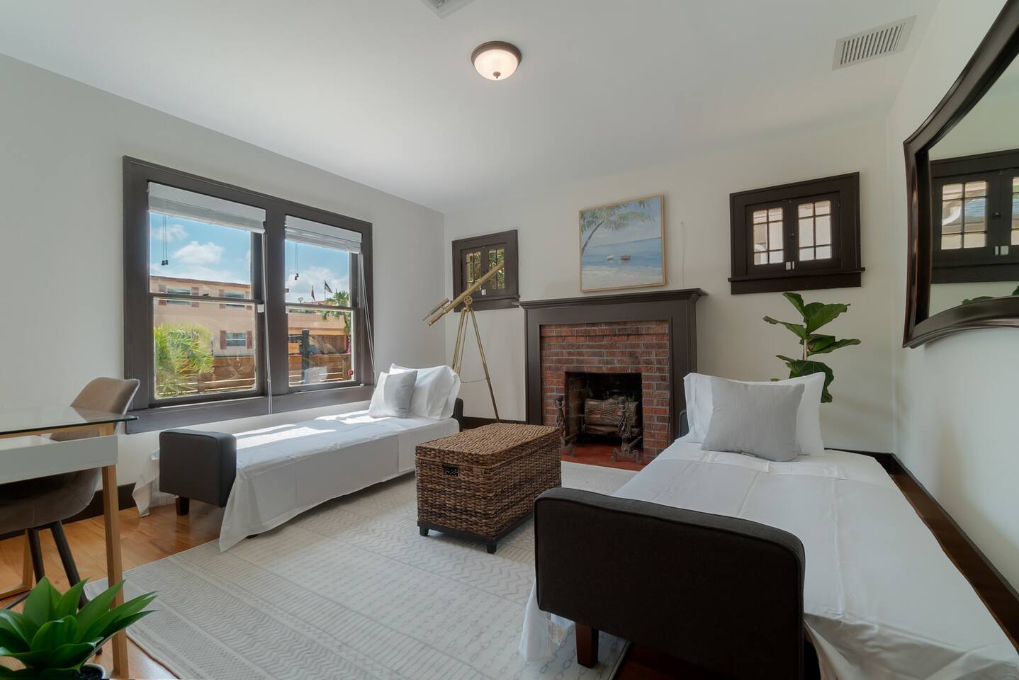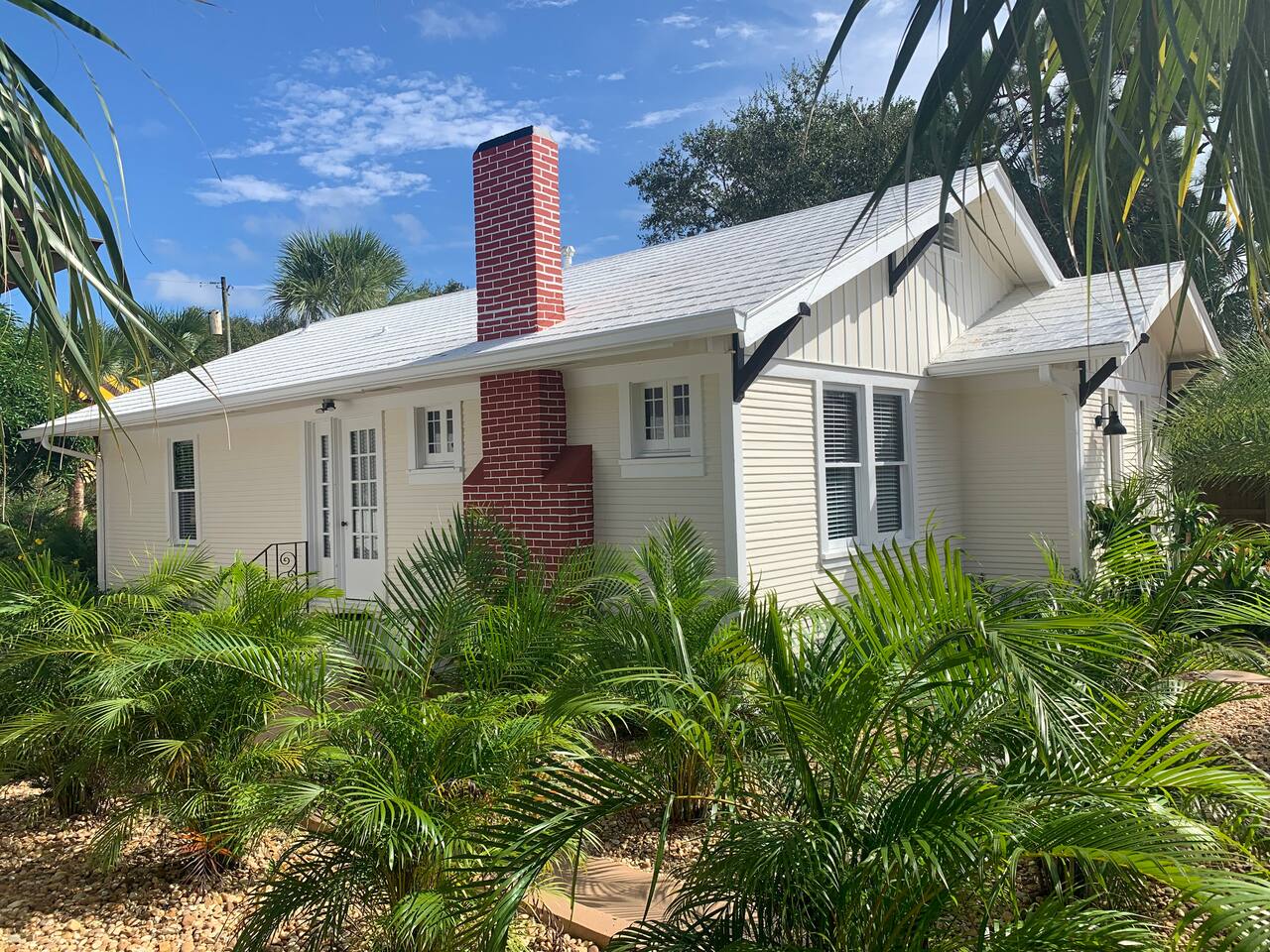 Built in the 1920's, this home has been completely renovated to modern day coastal charm. Whether it's been a long day of business or play, feel at home when you step inside this space where you will be greeted with a cozy living and dining area, a full kitchen- ready for some "at home" meals, two spacious bedrooms with plenty of closet space and an office with two convertible futons, perfect for the kids or young adults. Outside you will find bicycles- free for guest use during your stay, multiple sitting and dining areas with shade umbrellas, two barbecue grills, a cozy fireplace and a hammock. In our laundry area please help yourself to beach chairs and outdoor games.