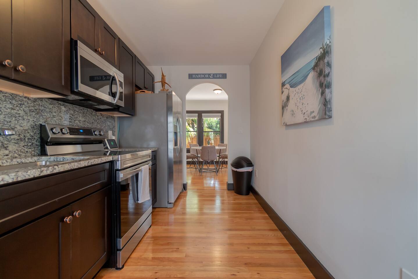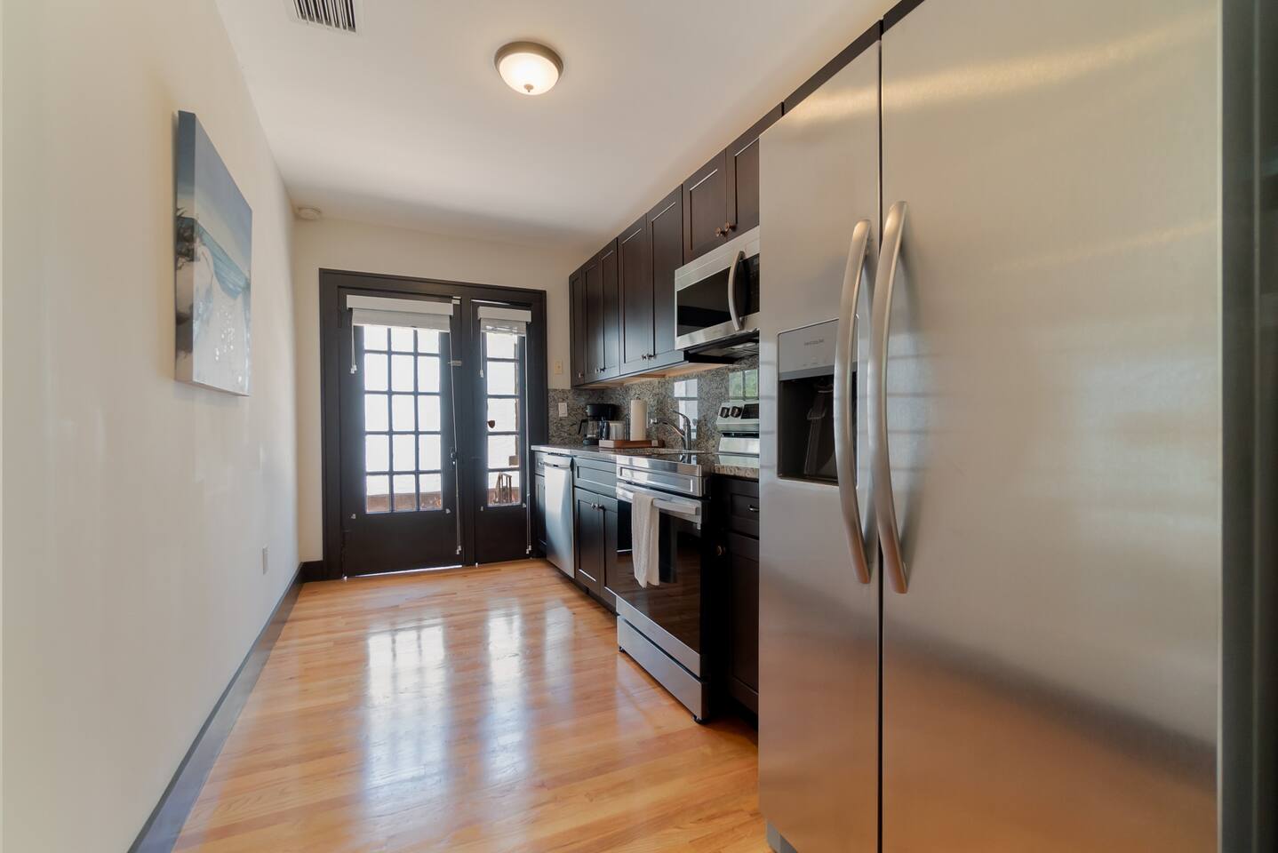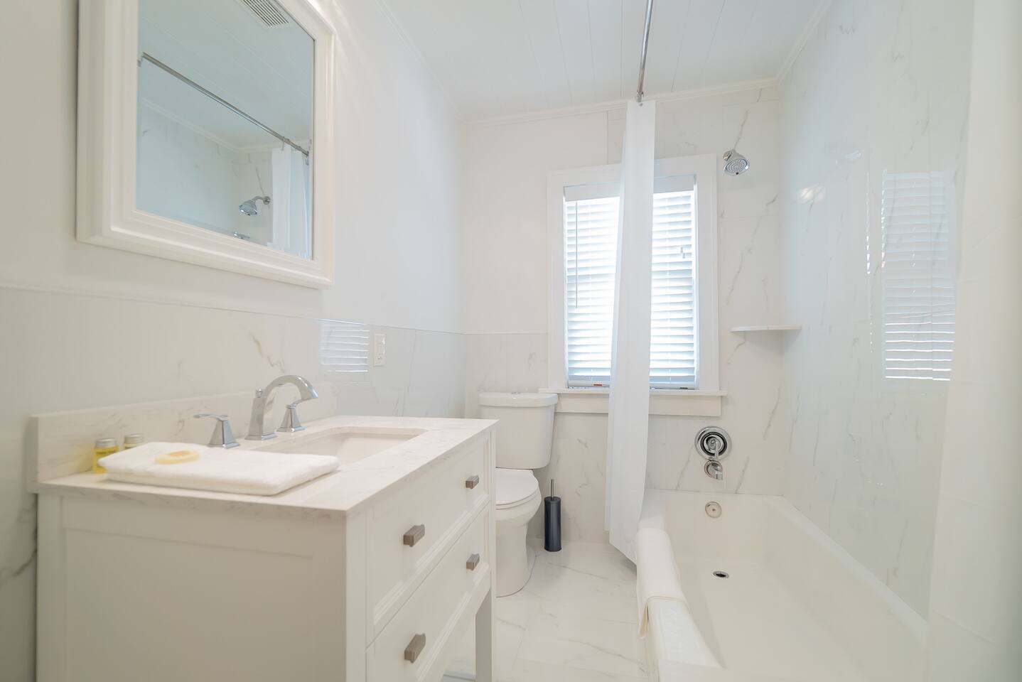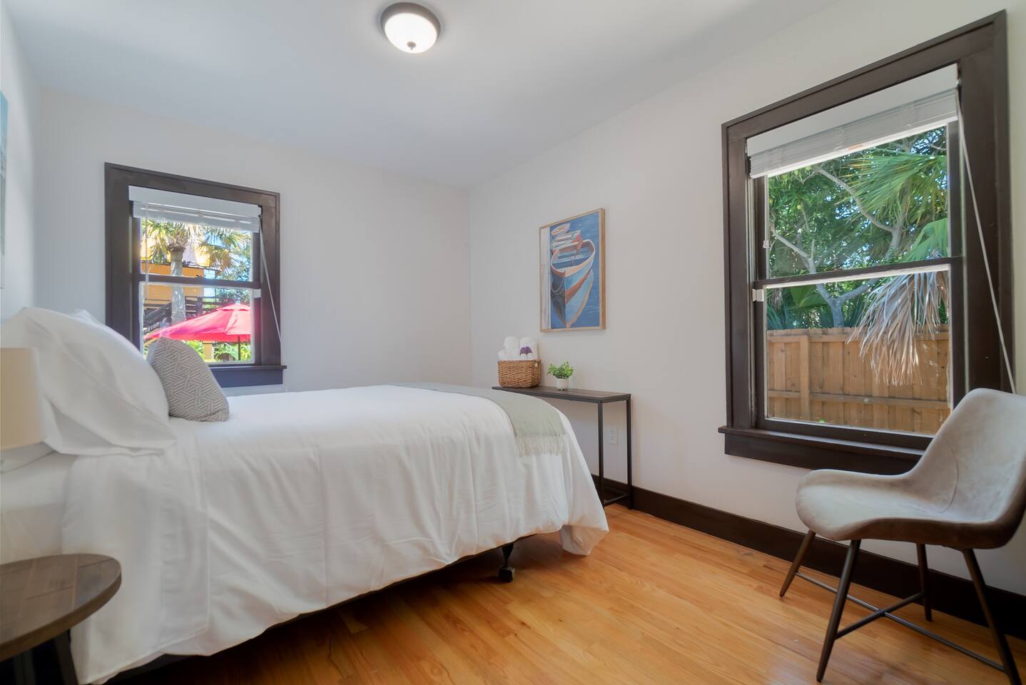 Built in the 1920's, this home has been completely renovated to modern day coastal charm. Whether it's been a long day of business or play, feel at home when you step inside this space where you will be greeted with a cozy living and dining area, a full kitchen- ready for some "at home" meals, two spacious bedrooms with plenty of closet space and an office with two convertible futons, perfect for the kids or young adults. Outside you will find bicycles- free for guest use during your stay, multiple sitting and dining areas with shade umbrellas, two barbecue grills, a cozy fireplace and a hammock. In our laundry area please help yourself to beach chairs and outdoor games.