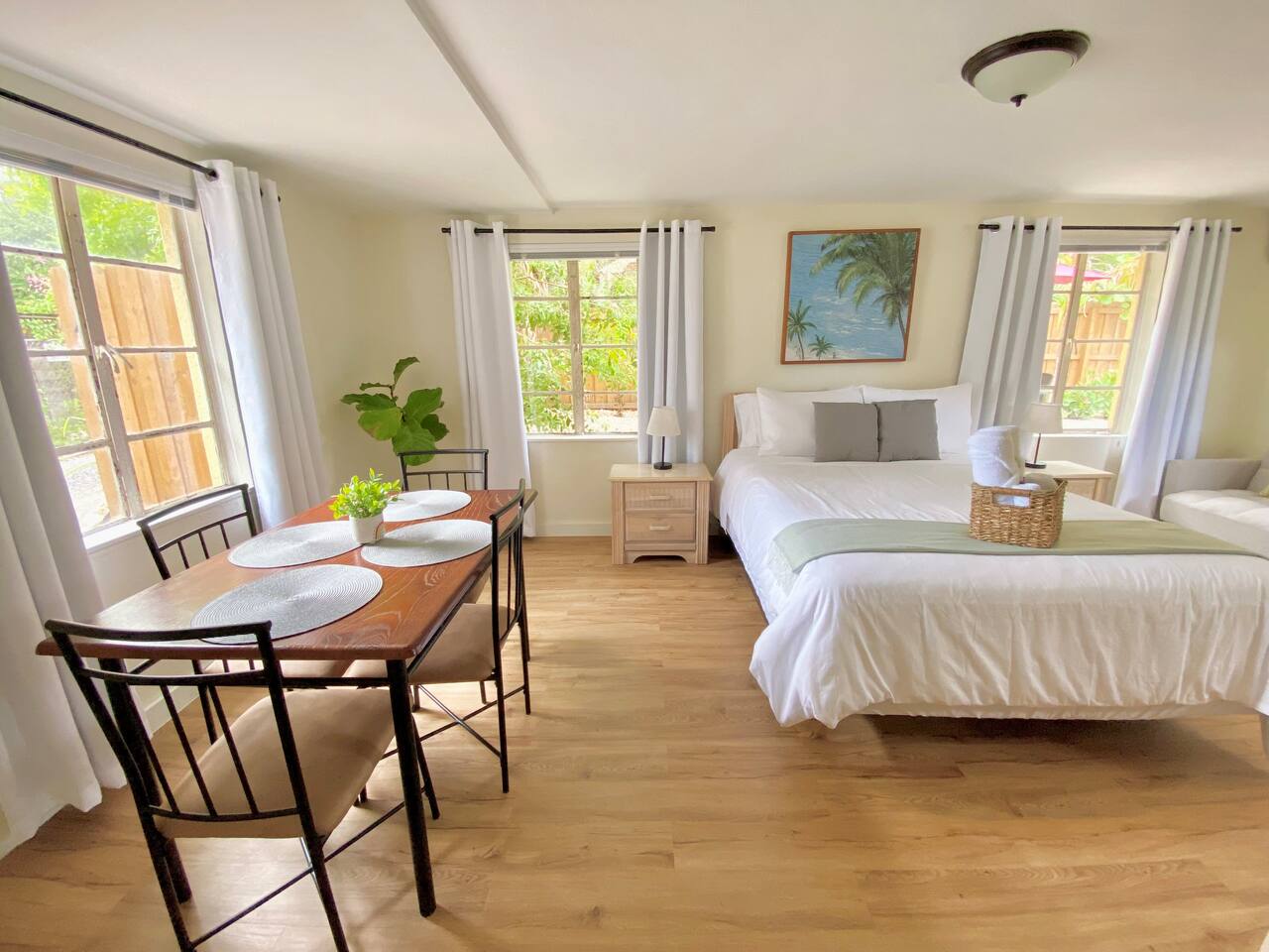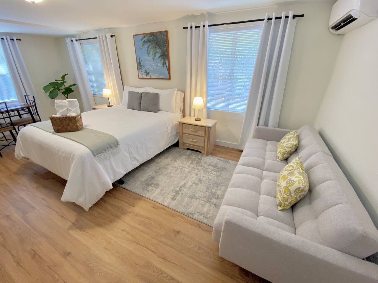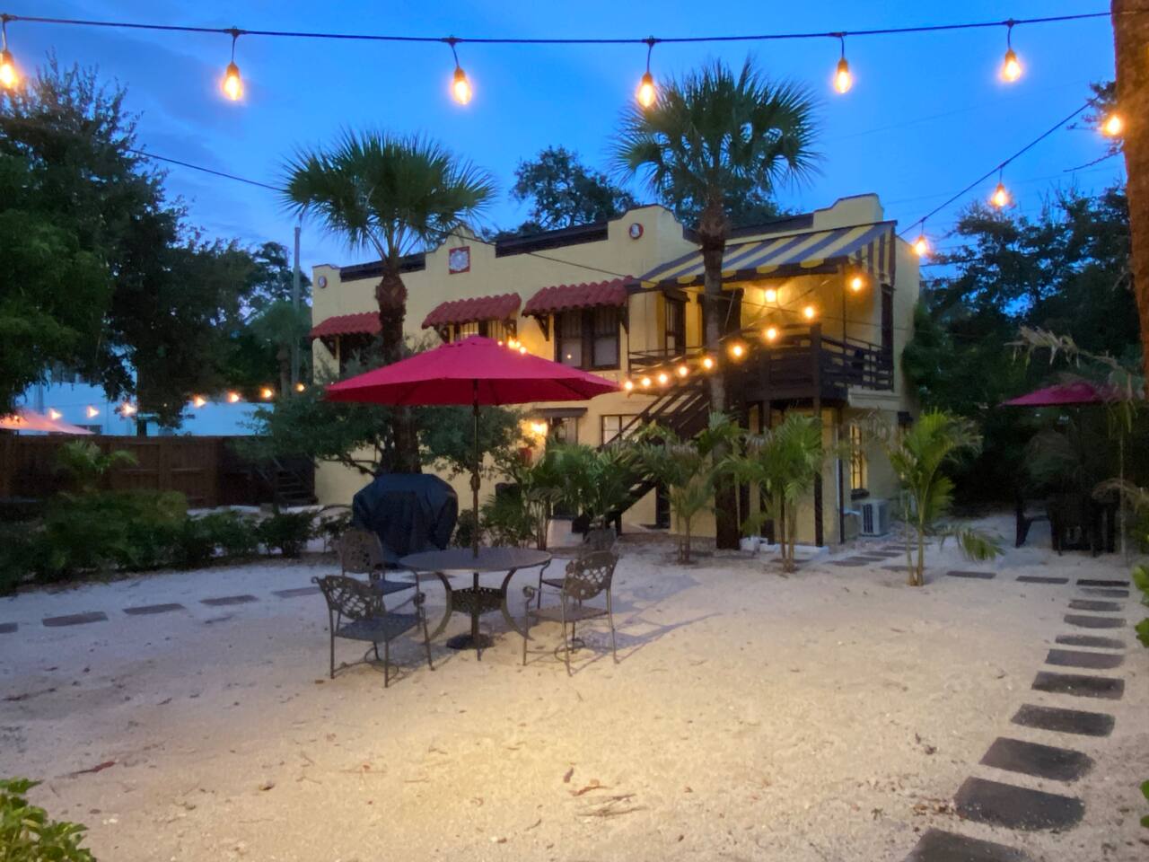 This apartment is located on the first floor of our newly renovated 1920’s historic building. Although fully renovated, we took careful thought when preserving the space's unique charm. Enjoy a full kitchen ready for some "home cooked" meals. In the morning enjoy a complimentary coffee and in the evening after exploring the town, curl up in front of our smart tv to catch up on your shows. This unit is just steps from the shared courtyard where you may enjoy many sitting areas, patio tables, two gas grills, a hammock under the oak tree and a fire pit. Bikes and beach essentials are provided on a first come first serve basis in the laundry area which is free for guest use during your stay.